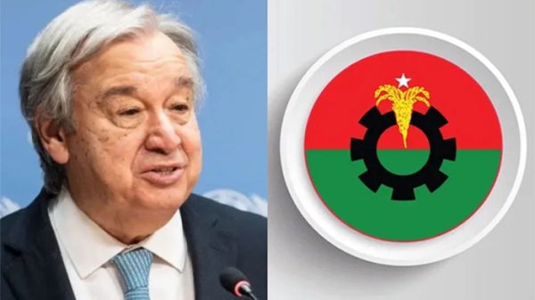 অনলাইন ডেস্ক : বাংলাদেশ সফররত জাতিসংঘের মহাসচিব আন্তোনিও গুতেরেসের সঙ্গে বৈঠক করবে বিএনপি। বৈঠকে বিএনপি মহাসচিব মির্জা ফখরুল ইসলাম আলমগীরসহ দলটির প্রতিনিধিরা অংশ নেবেন। আজ শনিবার (১৫ মার্চ) দুপুর একটায়