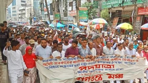 জেএন ২৪ নিউজ ডেস্ক: রাজধানীতে দ্বিতীয় দিনের মতো পদযাত্রা কর্মসূচি পালন করেছে গণতন্ত্র মঞ্চ। বুধবার পুরানা পল্টন থেকে এ পদযাত্রা কর্মসূচি শুরু হয়। সরকার পতনের এক দফার যুগপৎ আন্দোলনের অংশ